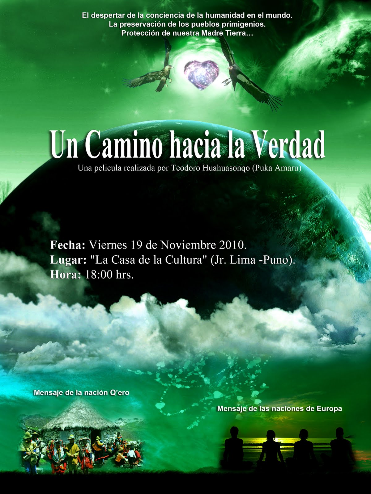 El músico y cineasta ayavireño Teodoro Huahuaa (Puka Amaru) radicado en Belgica desde hace varios años estará presentado su documental "Un Camino hacia la Verdad" este viernes 19 de noviembre en "La Casa de la Cultura" (Jr. Lima #550) a partir de las 18:00 Hrs., los invitamos a todas y todos a disfrutar de este interesante trabajo que consta de dos partes, Ayllu Q’apariy (mensaje de la nación Q’ero) y Un Camino hacia la Verdad ( mensaje de los occidentales).